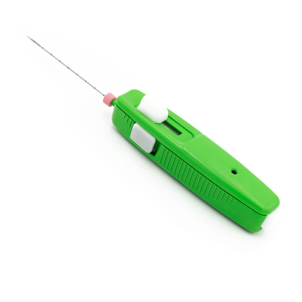 - One-button loading: a single button loads both the cannula and the stylet for ease of use.